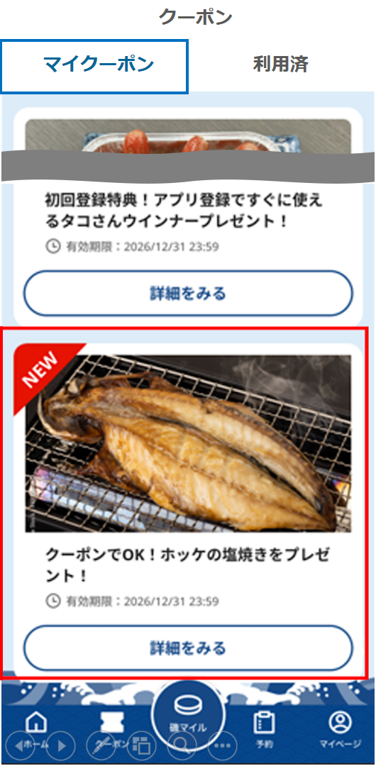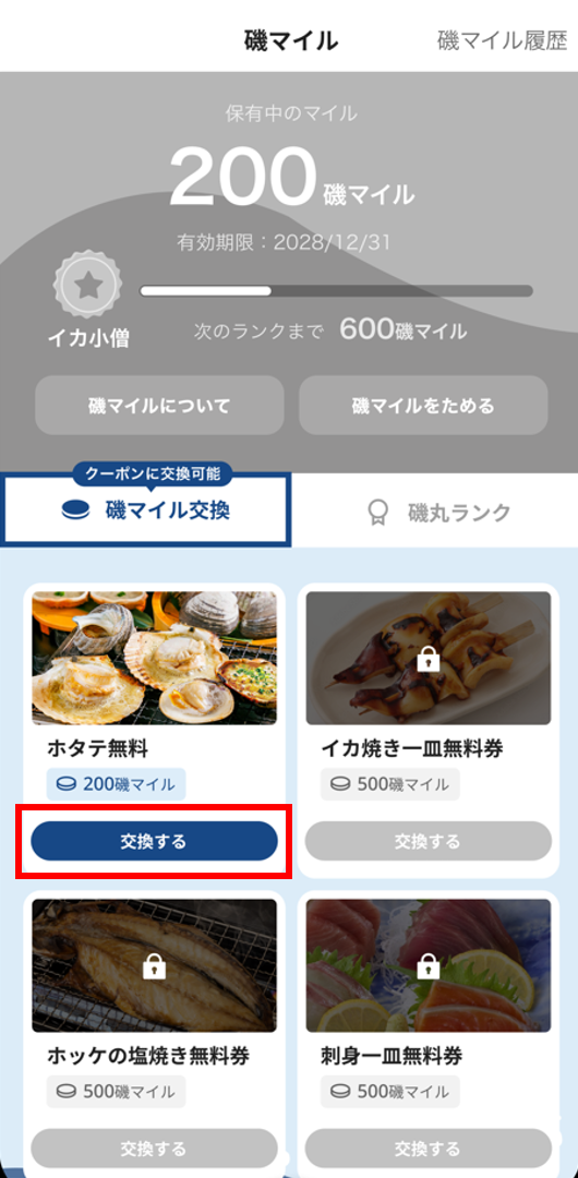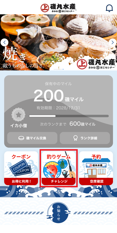 🐟最終来店日から12ケ月経過すると、ランクがリセットされマイルも失効しますのでご注意ください。
