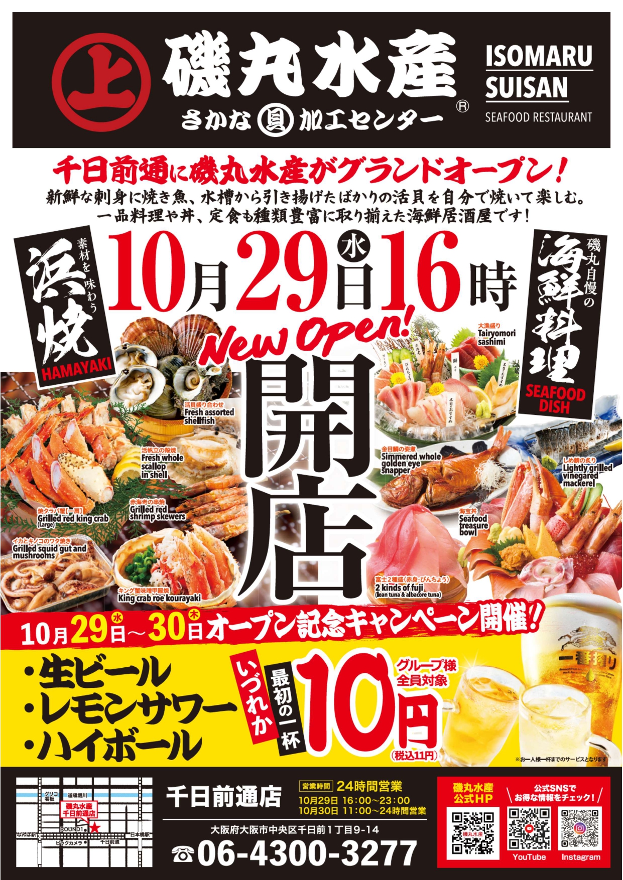 店舗ページ:https://isomaru.jp/sfp0024/ ※お一人様一杯まで、お一人様1,000円(税込)以上のご飲食が対象、グループ様全員ご注文いただけます。