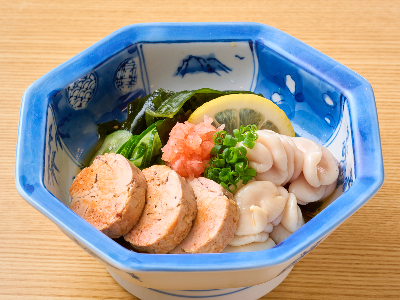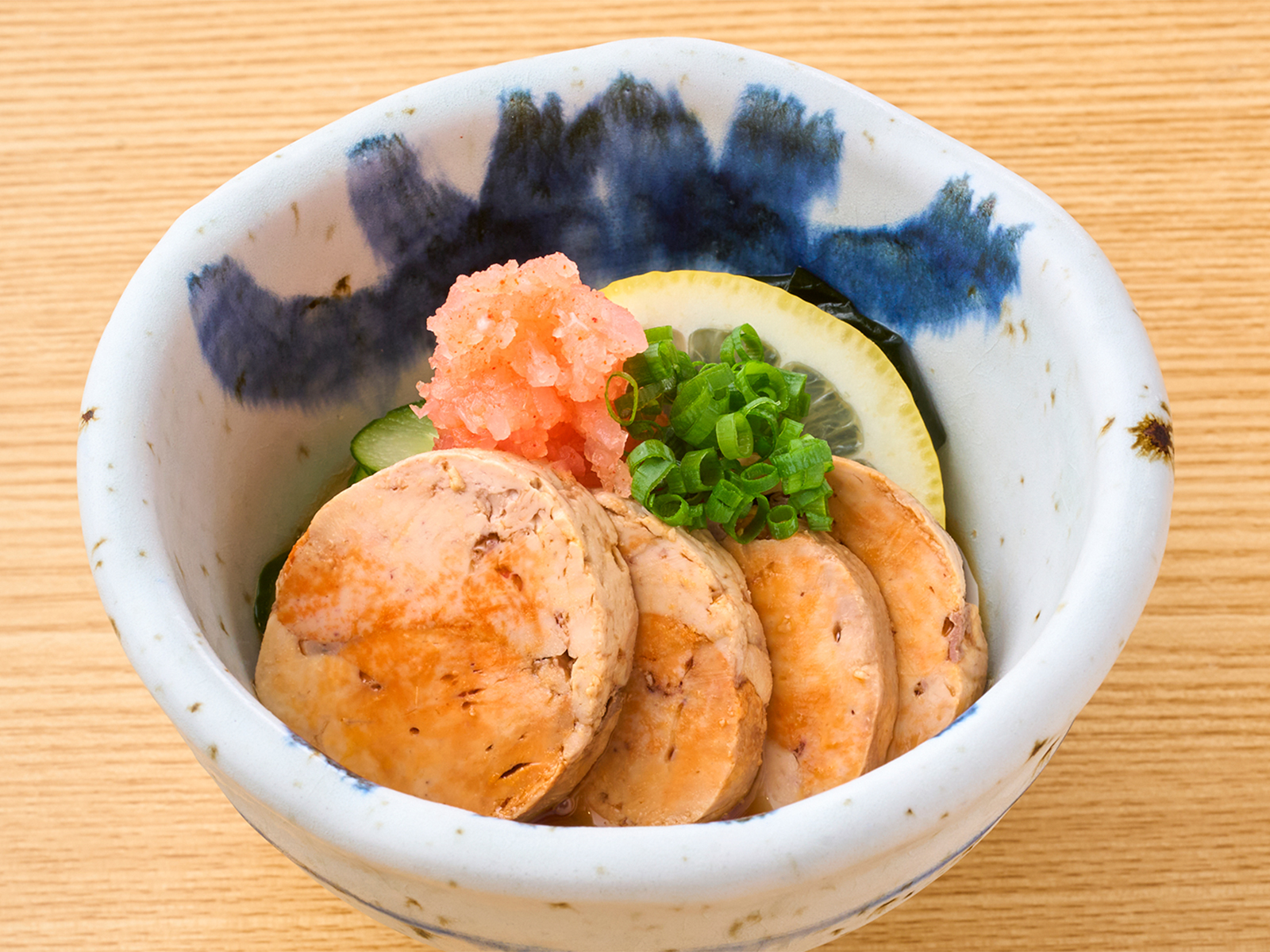 旨みが濃厚なあん肝と白子をぽん酢でさっぱりと!【あん肝と白子の會盛り】599円(税込659円)